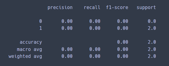 >> 실제 test 데이터에 적용했을 때는 precision, recall, f1-score 모두 0으로 나옴