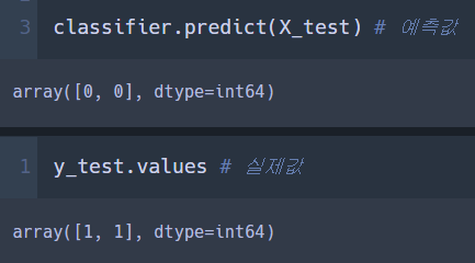 >> predict를 사용하면 0과 1만 반환하는데 0은 정상메일 1은 스팸메일이다.