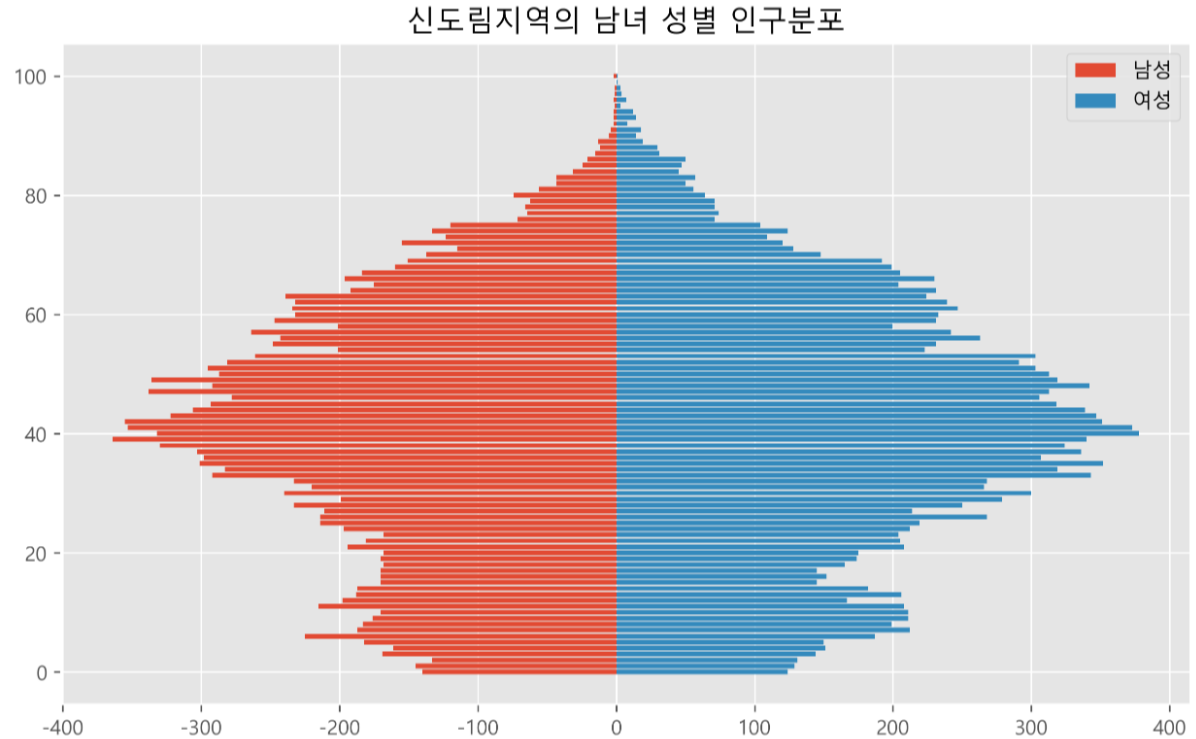 # 우리 동네 인구구조를 항아리 모양 그래프로 표현하기