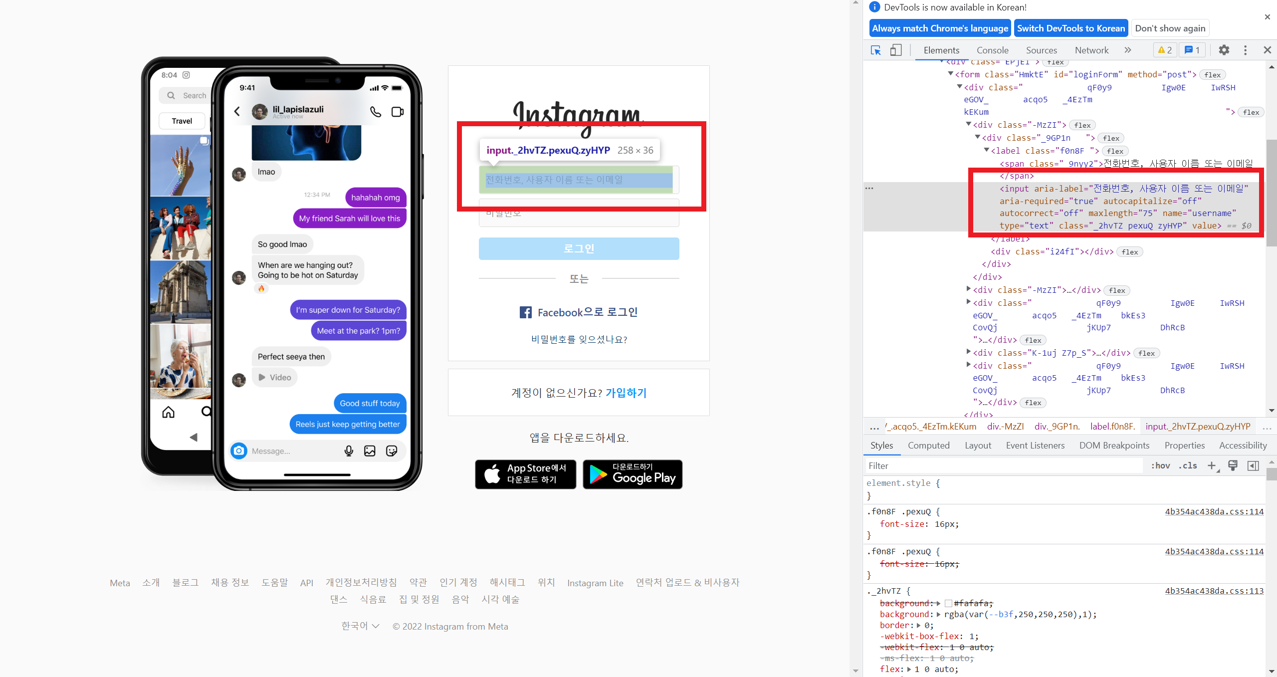 >> 인스타 계정 정보인 이메일과 패스워드 입력