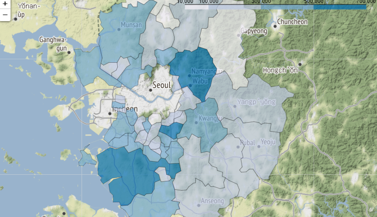 지도 영역에 단계구분도(Choropleth Map) 표시하기