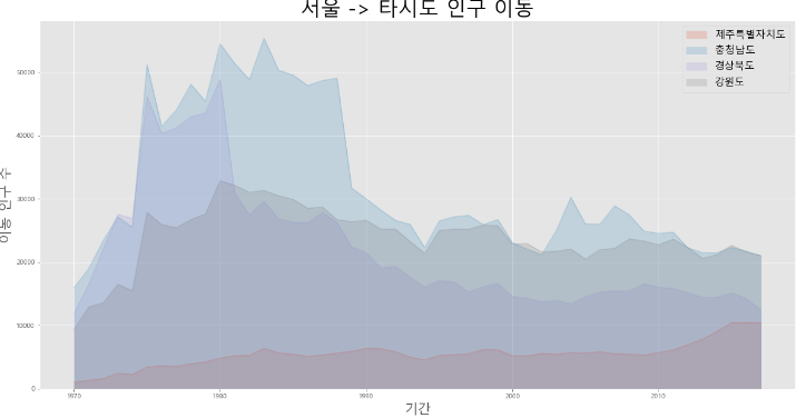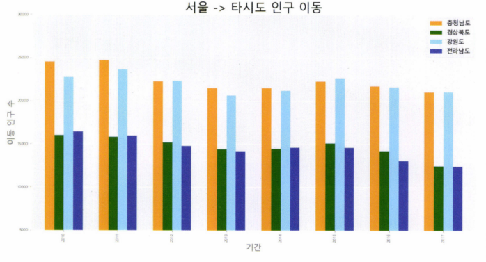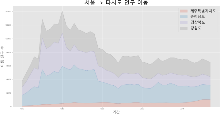 # 서울에서 다른 지역으로 이동한 데이터만 추출하여 정리