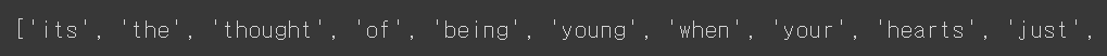 txt에 'Cause when we fall, we know how to land 이렇게 ' 나 , 이런 것들이 존재하기 때문에 다 지워준다.