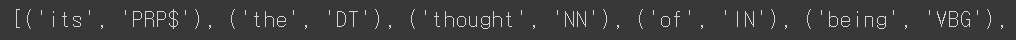 이때, 튜플 2번째에 나온 것이 품사 태그인데 내가 가지고 갈 품사를 정해야 한다.