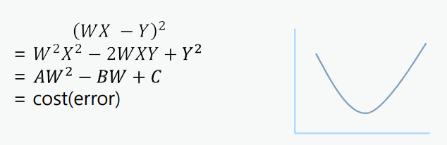 - $WX$ = 모델이 예측한 값 :point_right: x값 : w(weight), y값 : E (cost)