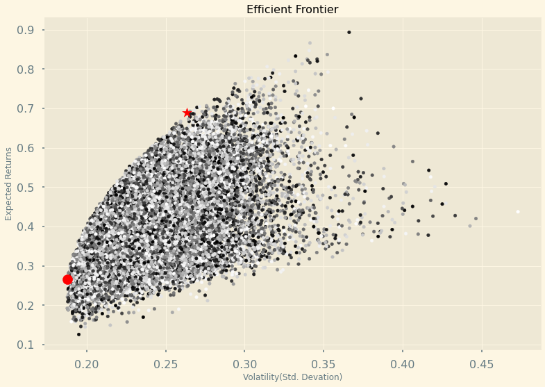 plt.xlabel('Volatility(Std. Devation)')