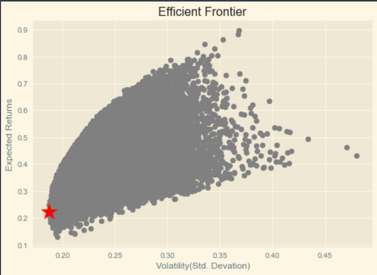 이번에는 밑의 포스팅에서 진행했던 효율적 투자선의 코드를 이용해 최소분산포트폴리오를 찾아보자.