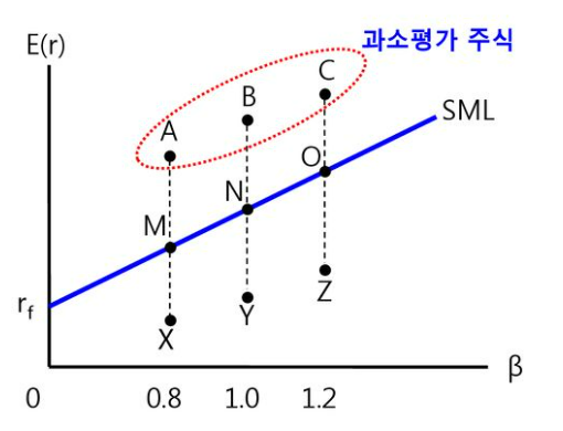 - 고평가(과대평가) 주식 : SML 아래쪽에 위치